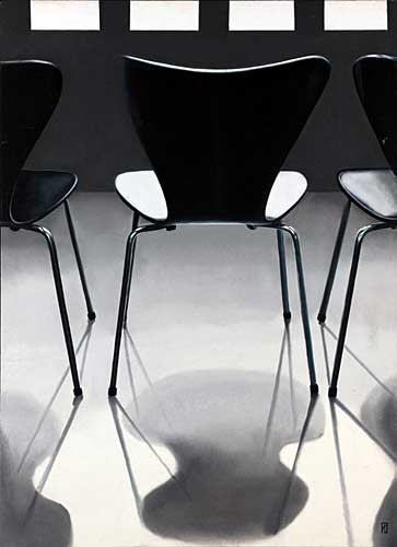 Angela Bugdahl, Stühle, undatiert, Acryl auf Nessel auf Spanplatte, 110 x 80 cm