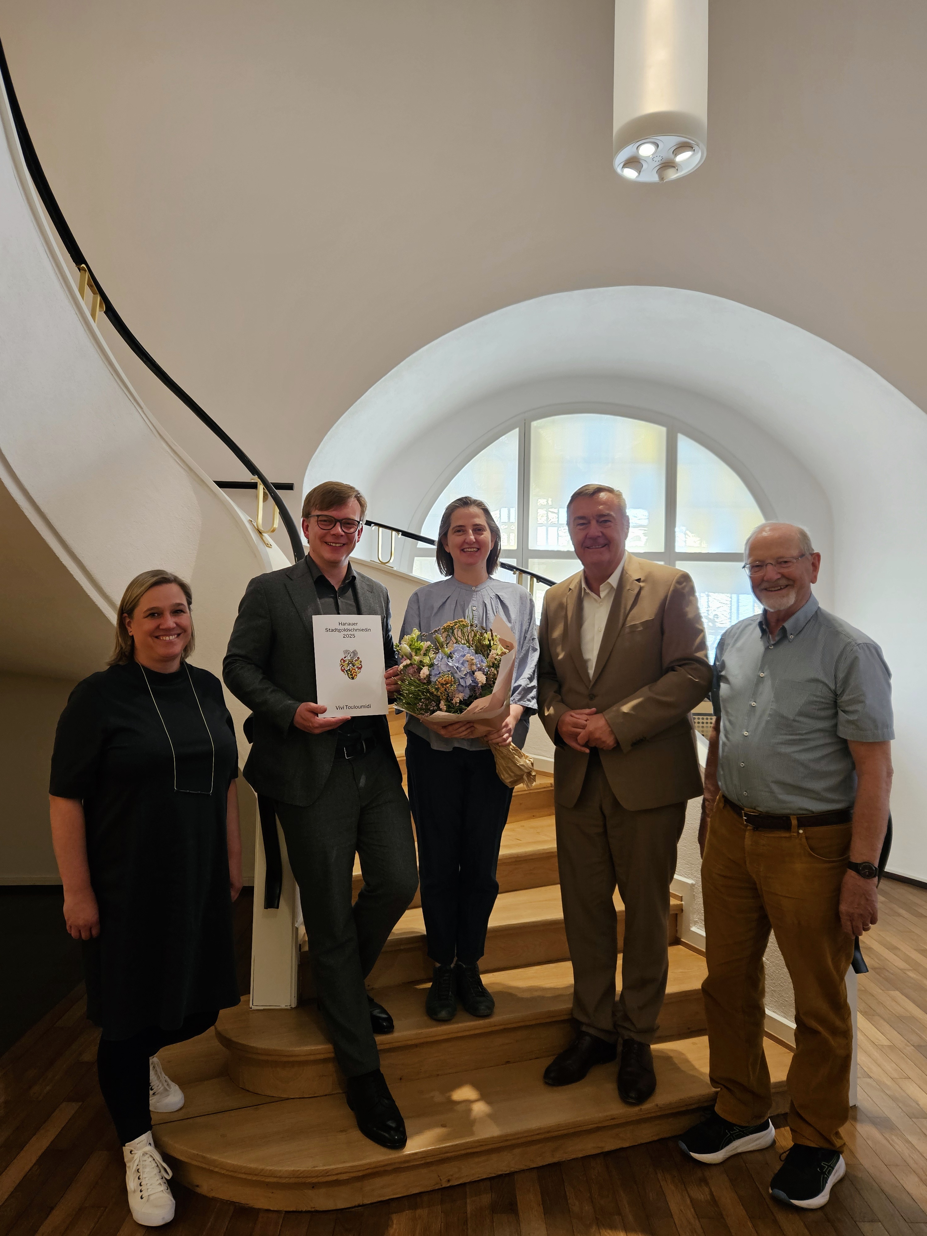 Vivi Touloumidi (*1977 in Athen, GR) wurde für das Jahr 2025 zur 11. Hanauer Stadtgoldschmiedin ernannt. Die Jury, bestehend aus Alexander Blank, Dorothea Förster, Malte Guttek, Martin Hoppe und Benjamin Pfister, hob die künstlerisch-forschende Qualität sowie den inhaltlichen Tiefgang der Arbeiten der Künstlerin hervor.