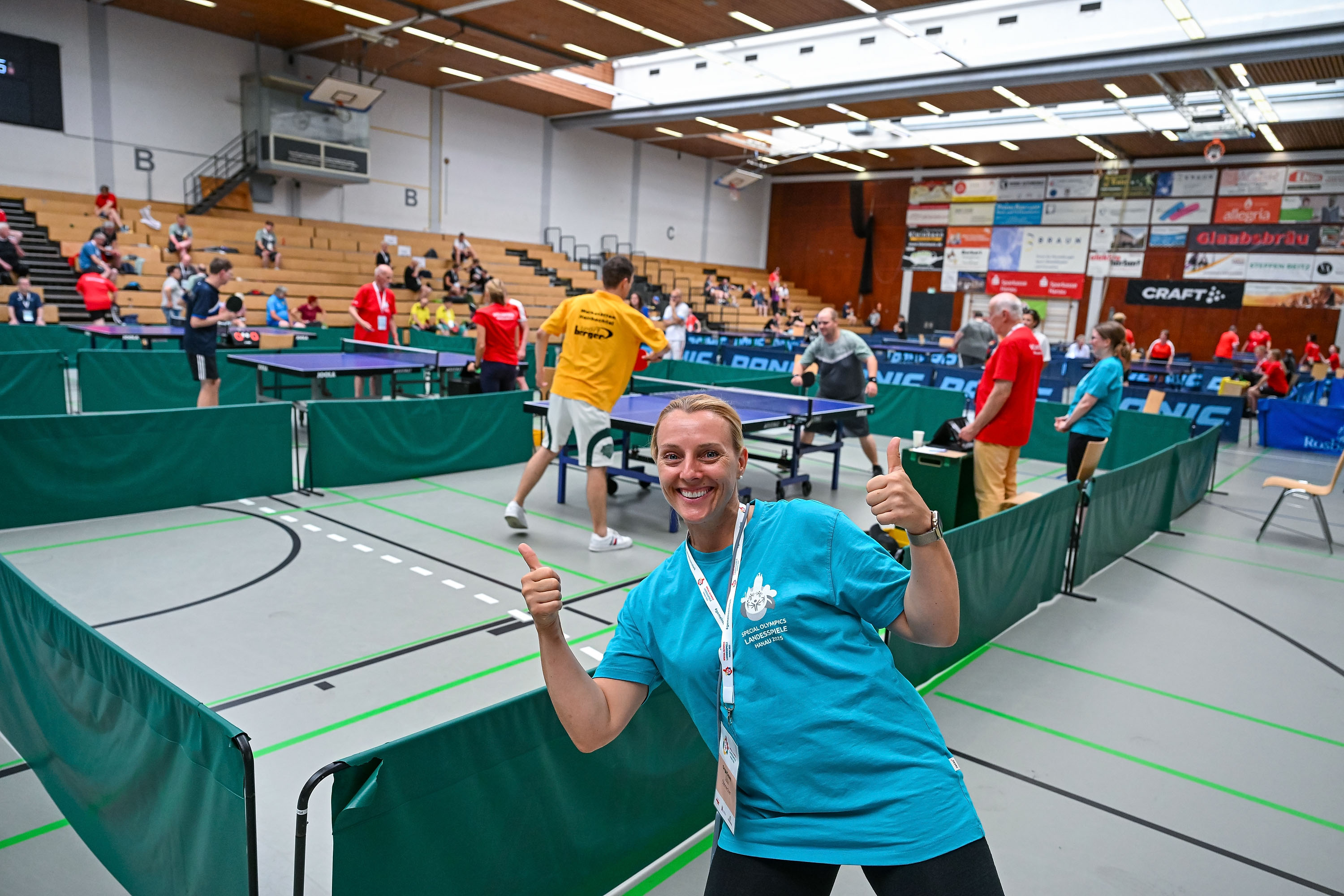 Volunteers begleiten die Special Olympics Landesspiele in unterschiedlicher Weise. Die Helferinnen und Helfer können ganz nah dran sein an den Sportlerinnen und Sportlern, sie begleiten und anfeuern. Auch sind organisatorische Dienste möglich, darunter die Versorgung mit Essen und Getränken oder aber Hilfe beim Auf- und Abbau. Alle Teilnehmerinnen und Teilnehmer erhalten kostenlose Mittagsverpflegung und ein Volunteer Certificate, das für Ausbildung oder Studium genutzt werden kann.