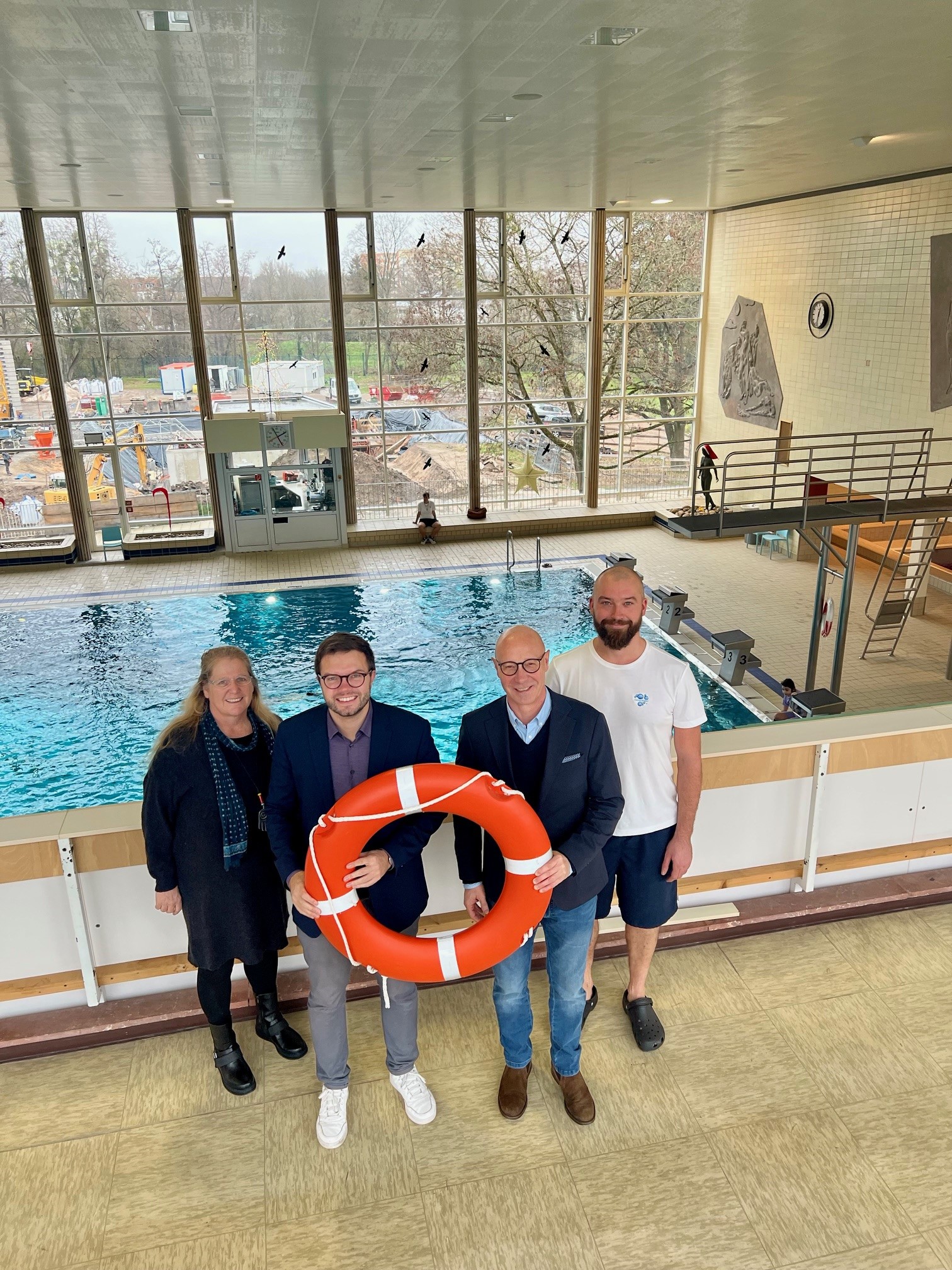 „Die Weihnachtsspende unseres Hafens ist ein sehr guter Vorbote auf die Special Olympics Landesspiele 2025 in Hanau und ein Beweis für das Zusammengehörigkeitsgefühl in unserer Stadt“, freut sich Bürgermeister Dr. Maximilian Bieri bei der Spendenübergabe an einer der Sportstätten im kommenden Jahr, dem Heinrich-Fischer-Hallenbad.