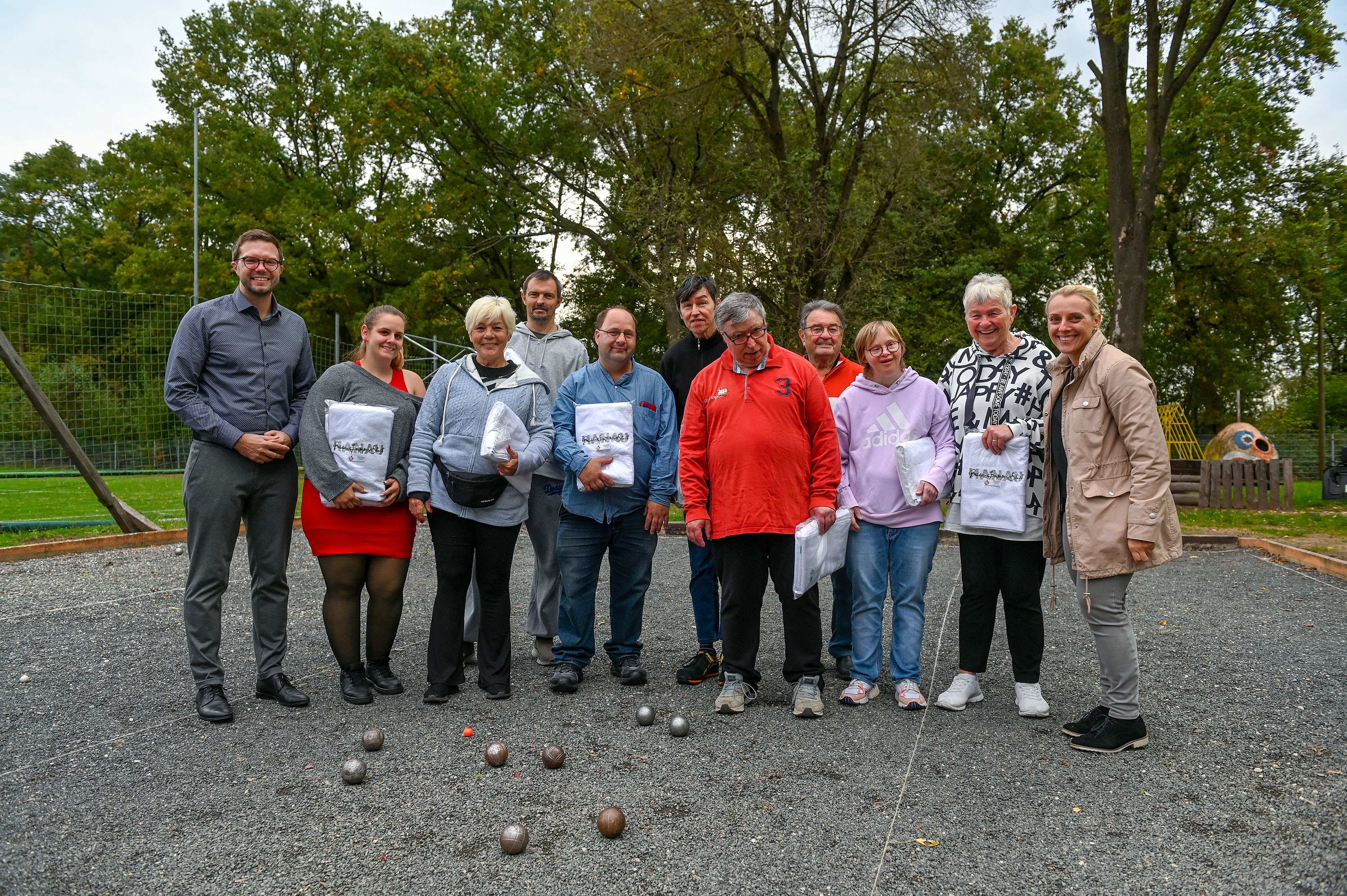 „Man spürt sofort die Freude am Spiel und der Gemeinschaft, aber auch den Ehrgeiz der Athletinnen und Athleten“, so Bürgermeister Dr. Maximilian Bieri bei seinem Besuch der neugegründeten inklusiven Boule-Mannschaft der DJK Steinheim.
