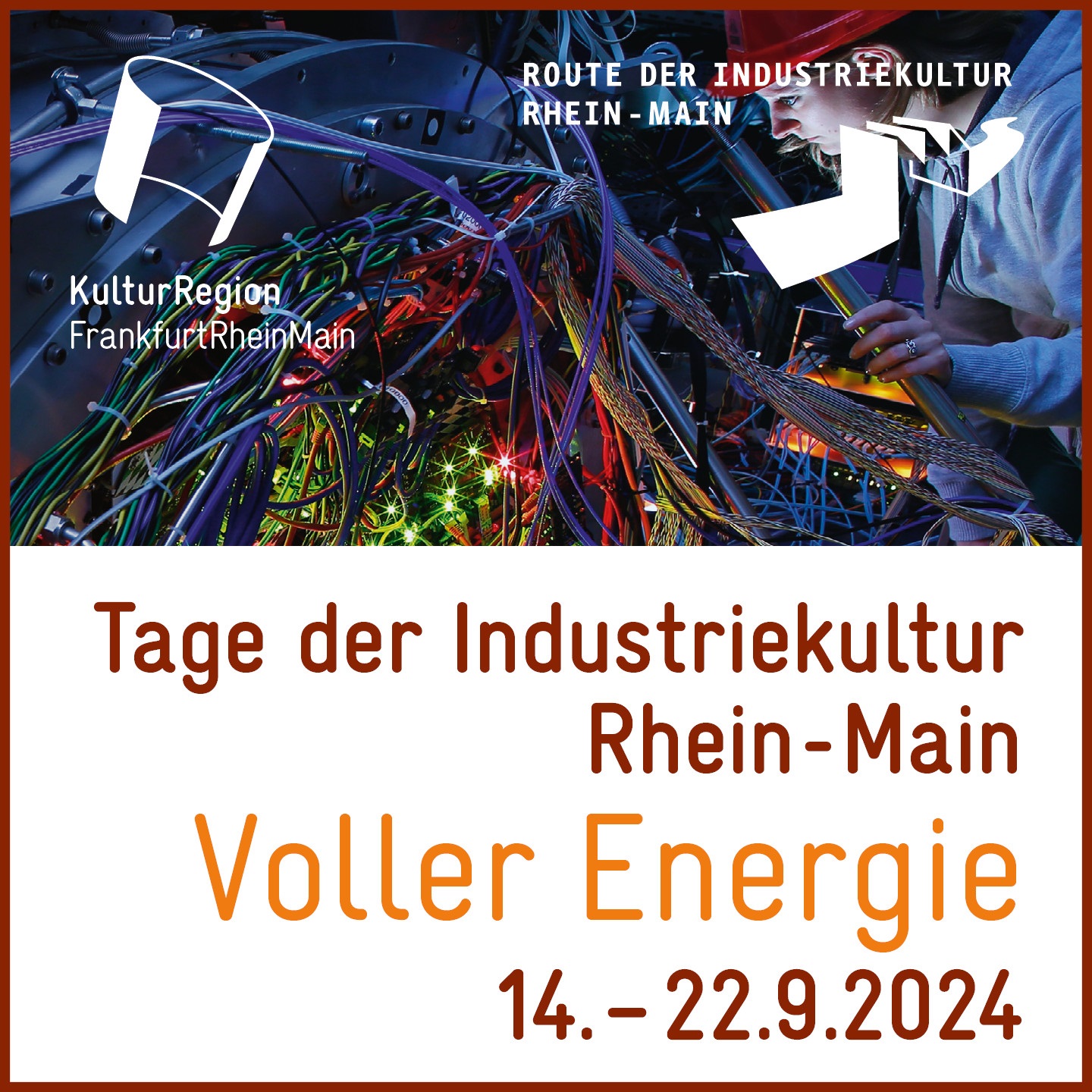 „Voller Energie“ lautet das Thema der diesjährigen „Tage der Industriekultur Rhein-Main“. Vom 14. bis 22. September 2024 laden mehr als 130 Veranstaltungen wie Betriebsführungen, Ausstellungen, Filmvorführung, Rundgänge, Rad- und Schiffstouren in 29 Städten und Gemeinden ein breites Publikum dazu ein, Energie aus verschiedenen Perspektiven zwischen privater Verwendung, kommunaler Bereitstellung und geopolitischen Abhängigkeiten zu betrachten.