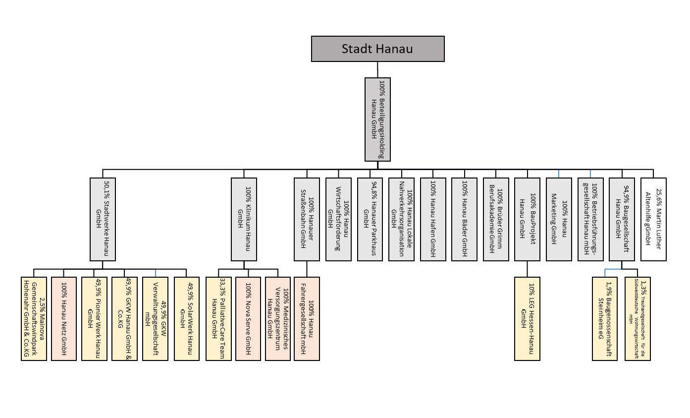 Der Beteiligungsbericht – der nach der Hessischen Gemeindeordnung einmal im Jahr veröffentlicht werden muss – liefert hierzu tiefergehende Einblicke in die Struktur und Wirtschaftlichkeit der städtischen Unternehmen. Trotz sich stetig ändernder Rahmenbedingungen und Krisen im Finanzsektor sorgt die Stadt Hanau mit ihrer Kernverwaltung, den Eigenbetrieben und ihren Gesellschaften dafür, dass den Bürgerinnen und Bürgern ein breites kommunales Leistungsspektrum angeboten werden kann.