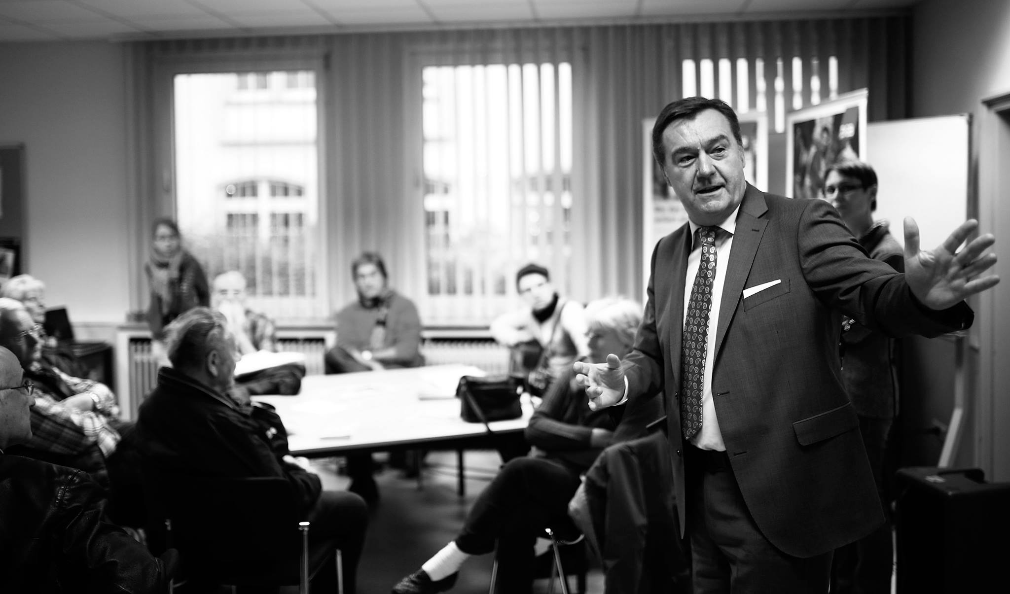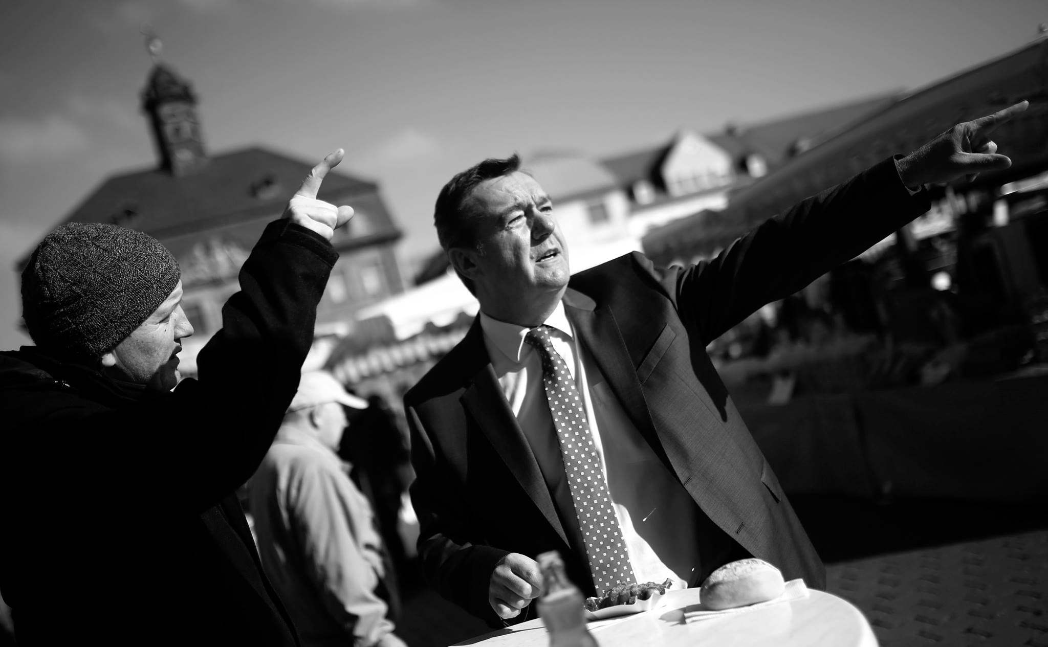 Immer wieder werde ich angesprochen, wie der so aussieht. Oft sind die Menschen überrascht, dass ich nicht den ganzen Tag in meinem Büro am Schreibtisch sitze. Durchschnittlich 13 bis 14 Stunden hat ein Arbeitstag. Und am Wochenende geht es durchgängig weiter. Als Kai Pfaffenbach mich ansprach, ob er mich mal begleiten dürfte, habe ich spontan zugesagt. Es sind Bilder entstanden, die man sonst nicht unbedingt in der Öffentlichkeit sieht. Sie dokumentieren nicht alles, weil viele Sitzungen nicht öffentlich sind, aber sie geben einen Eindruck, wie die für mich schönste Aufgabe täglich aussieht. (Mit Klick auf das Bild erfahren Sie mehr)
