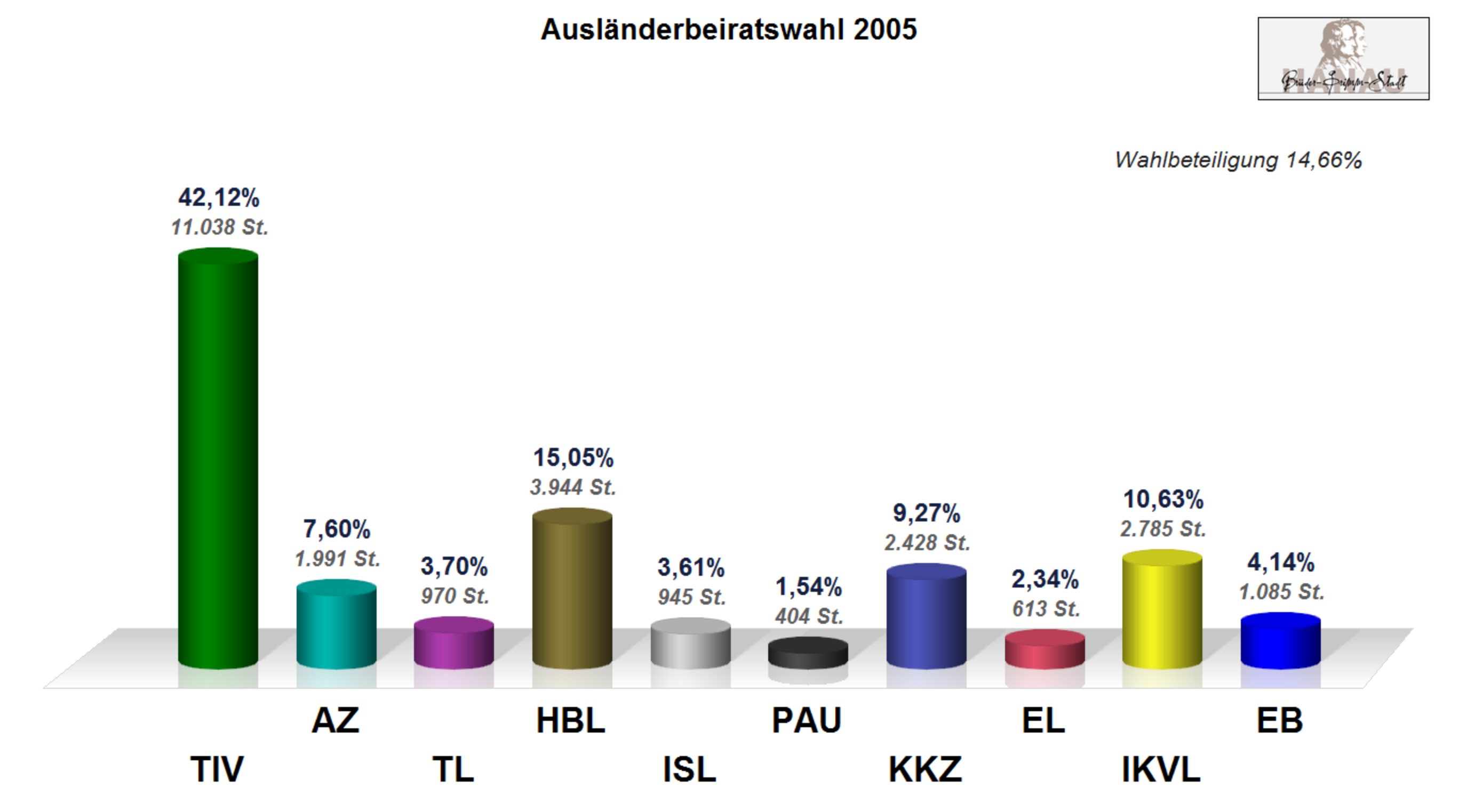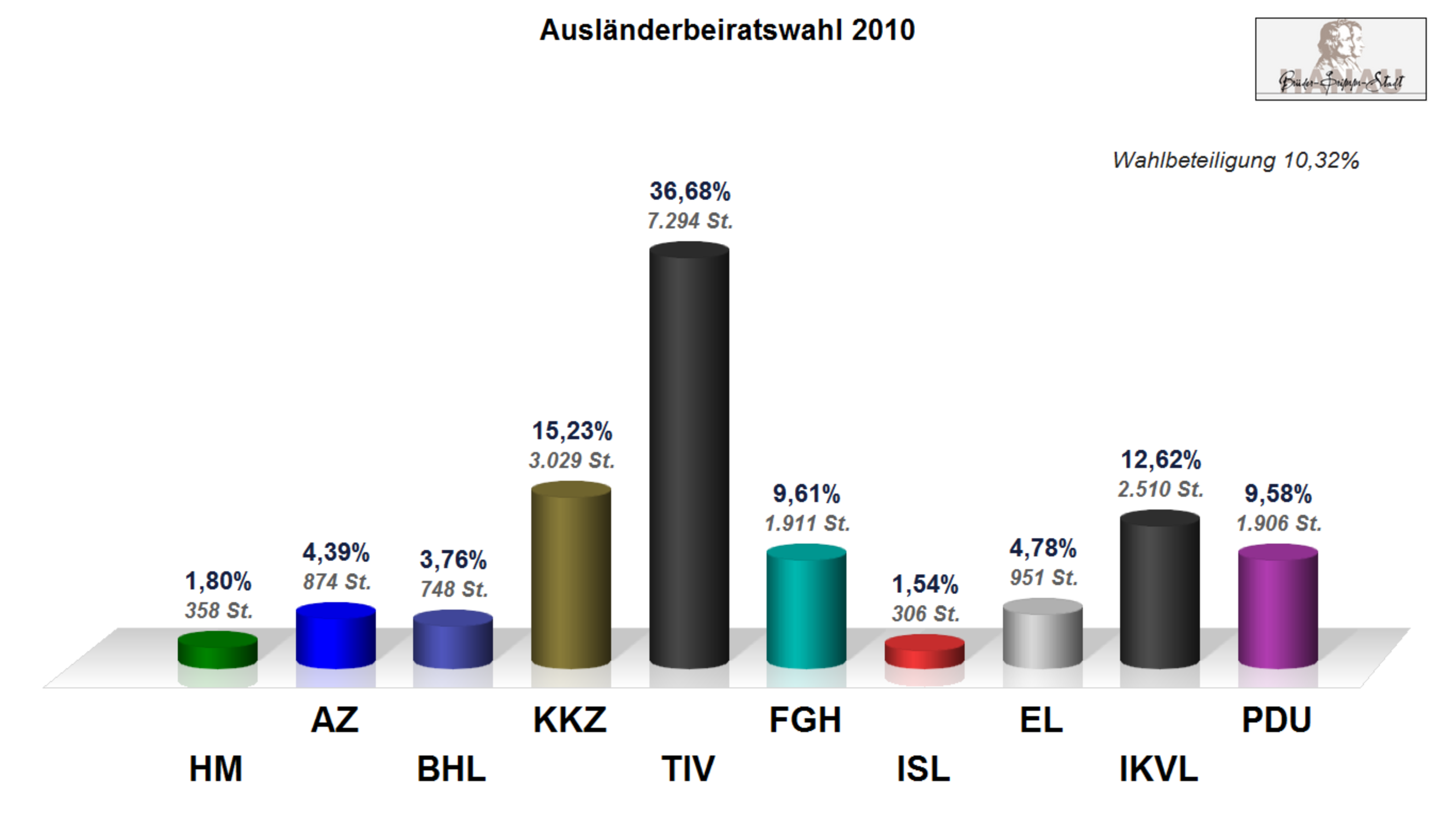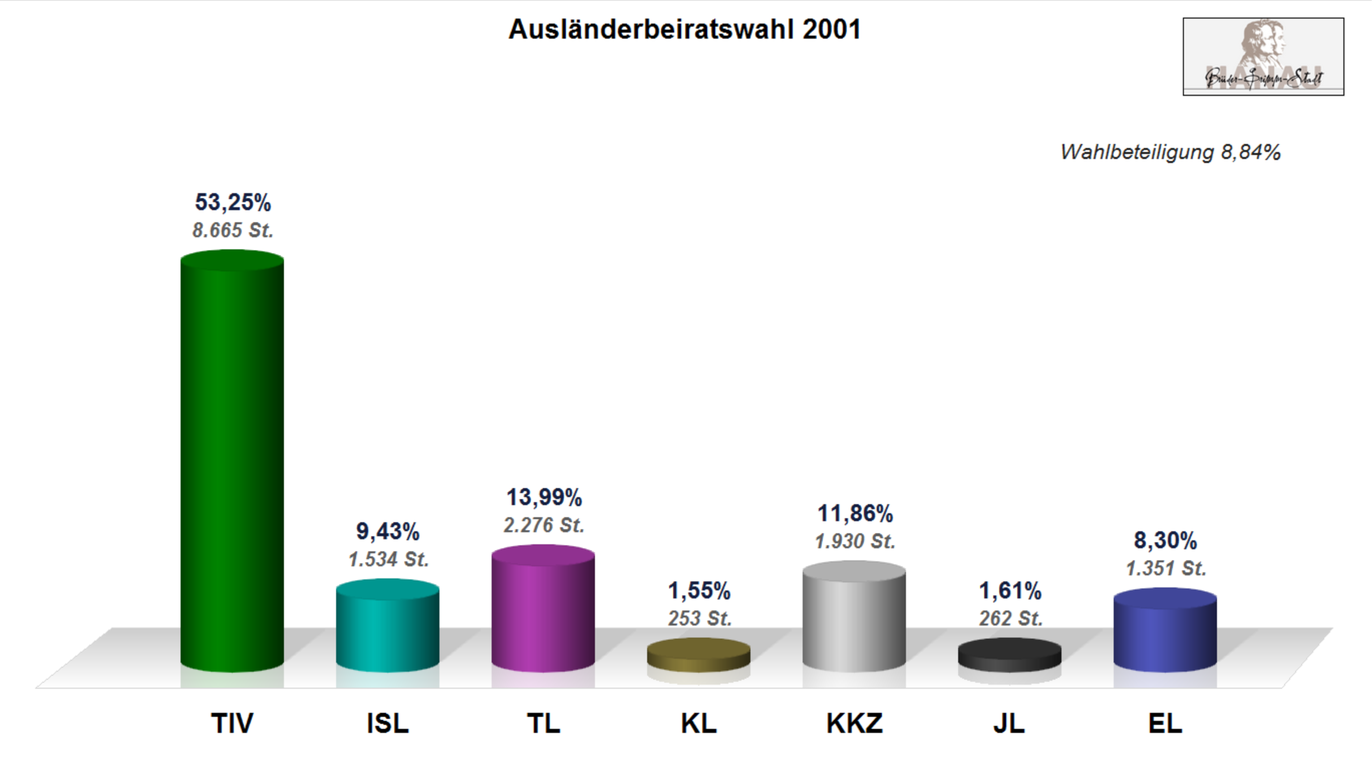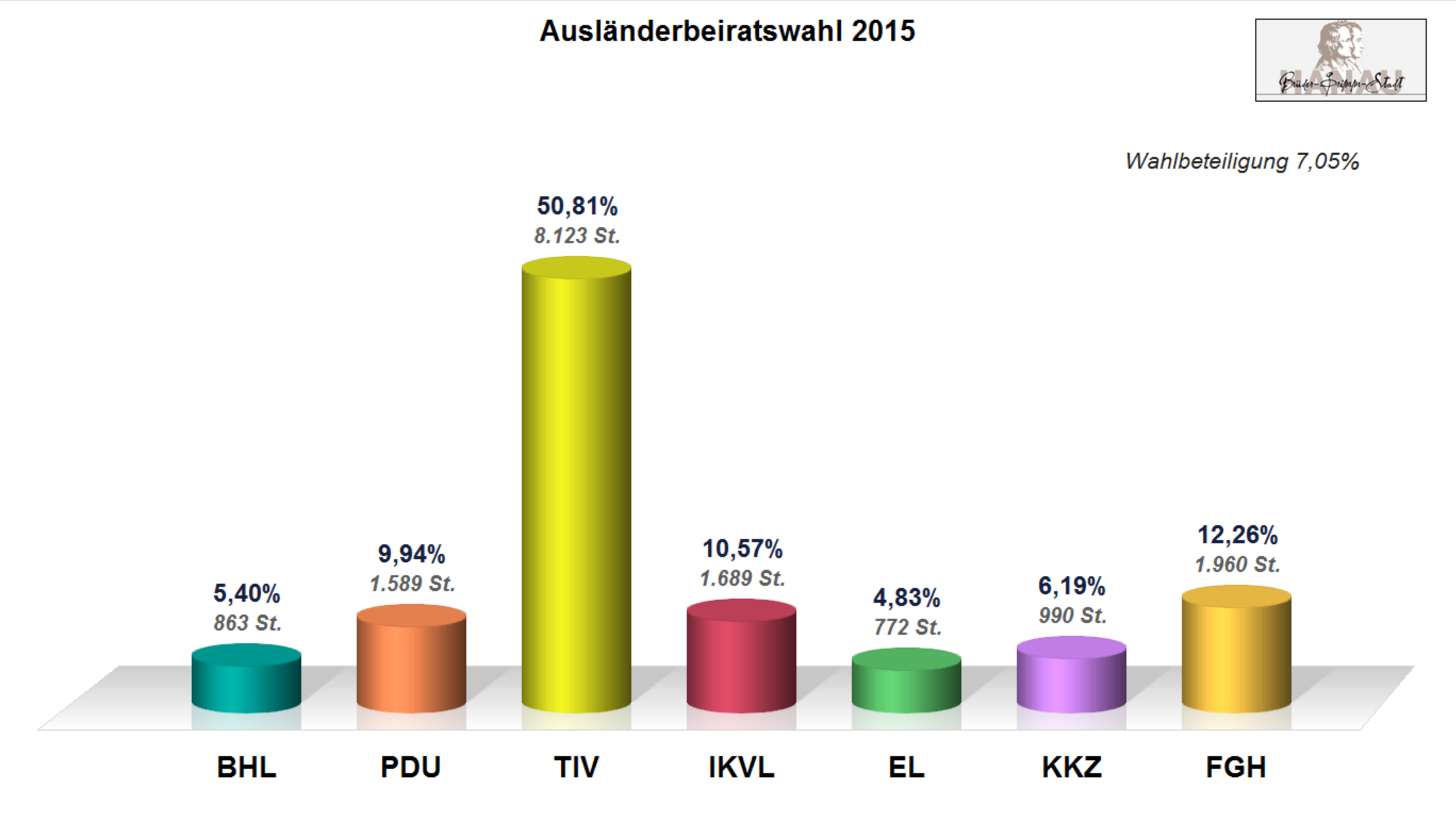 | Türkischer Islamischer Verein | 711 | 31,98 % | 5 Sitze |