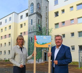 Bei einem Vor-Ort-Termin zeigten sich Bürgermeister Dr. Maximilian Bieri, Stadträtin Isabelle Hemsley, Ortsvorsteher Rainer Dunkel und HIS-Vertreterin Theresia Trageser-Schneider beeindruckt von dem farbenfrohen und attraktiven Ergebnis.