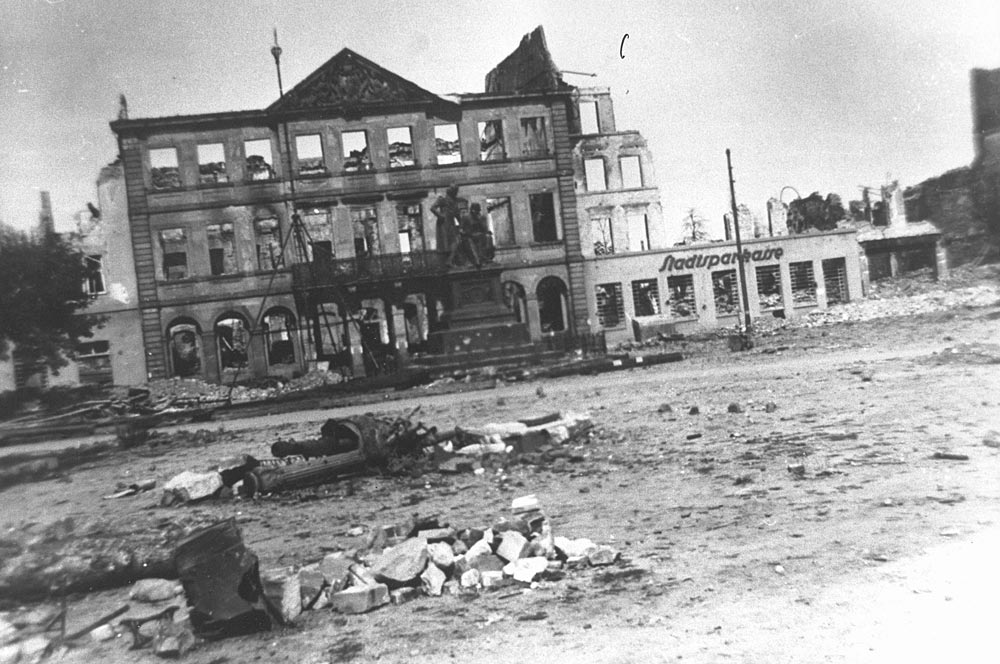 Neben unzähligen Einzelschäden waren die Stadthalle, das Stadtschloss, das Stadttheater, die Kaserne (das heutige Behördenhaus) und das Zeughaus ausgebrannt.
