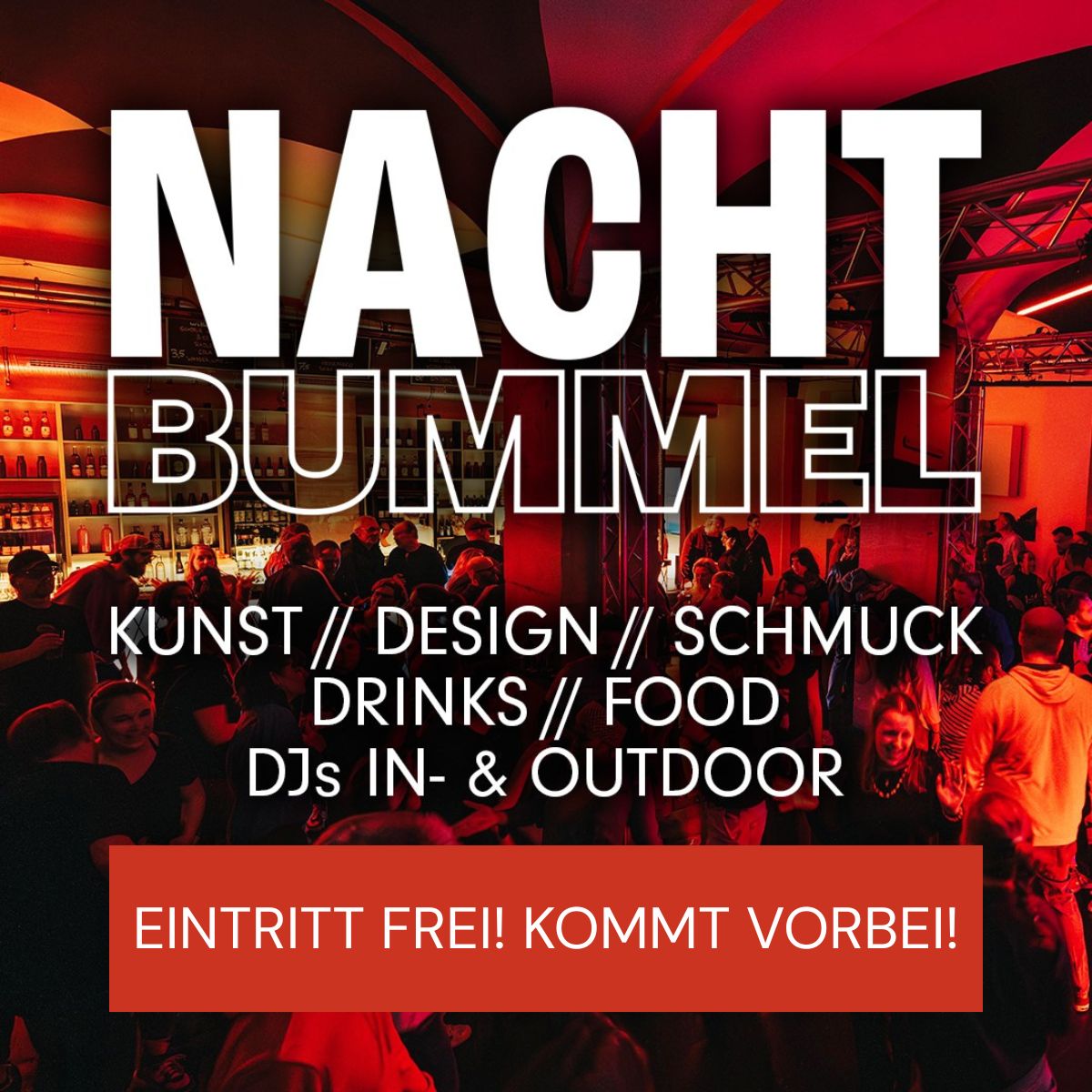 Der „Nachtbummel“ ist der Markt für Kreative, auf dem bis in den späten Abend gebummelt und eingekauft werden kann. Das Motto heißt: „Bummeln, Shoppen, Essen und Trinken, Tanzen und Feiern mit Freunden.“