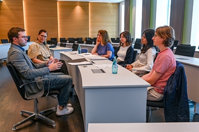 Im Stadtverordnetensaal im Neustädter Rathaus empfing Bürgermeister Dr. Maximilian Bieri drei Vertreterinnen und Vertreter der Amnesty International AG der Hohen Landesschule (Hola). Er hatte die Schülerinnen und Schüler gemeinsam mit der AG-Leiterin und Lehrerin Diana Birkenfeld eingeladen, um mehr über ihr Engagement für Amnesty International zu erfahren.